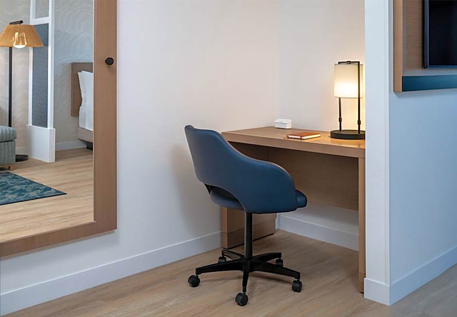 This king room includes a dry bar. sofa bed, and a 42-inch flat-screen TV.